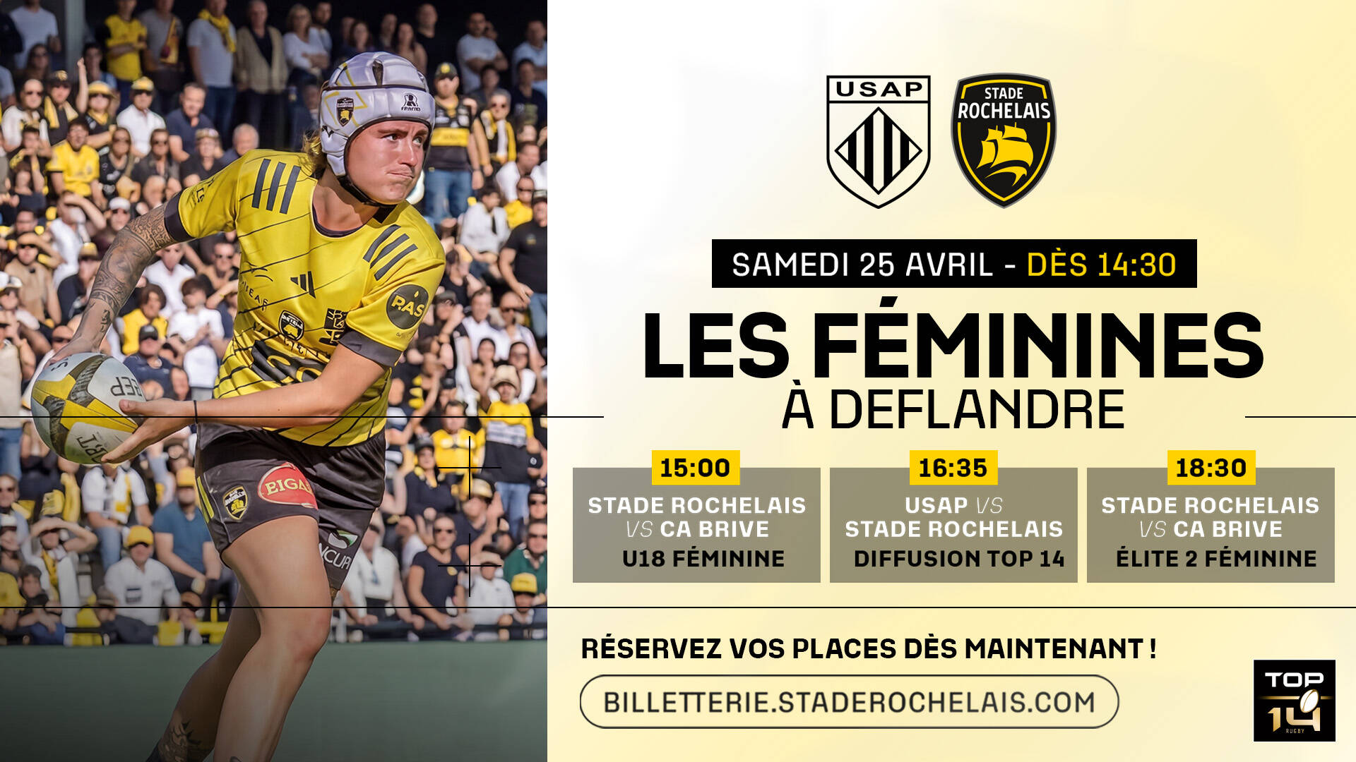 - 15h00 : U18 Filles Élite Stade Rochelais vs U18 Filles Élite CA Brive