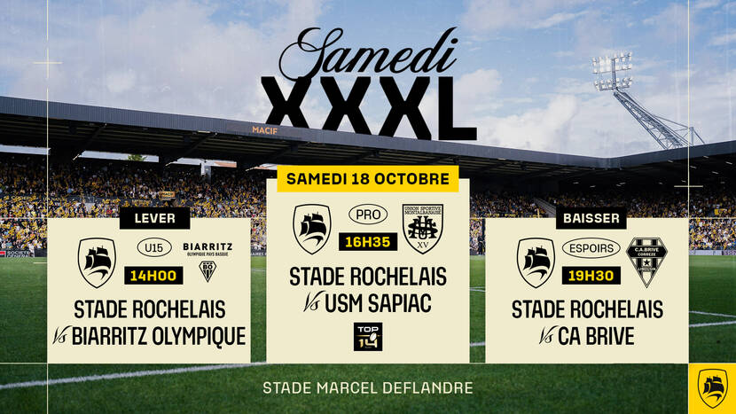 - 19h30 : Stade Rochelais Espoirs vs CA Brive (entrée libre)