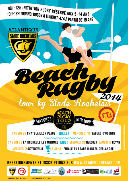 Après une 2 éditions couronnées de succès, l'Atlantique Stade Rochelais renouvelle son Beach Rugby Tour by Stade Rochelais parrainé par N-GAGE. Comme les saisons précédentes, 6 plages accueilleront une initiation pour les plus jeunes le matin et un tournoi 4 contre 4 à touché l'après-midi.