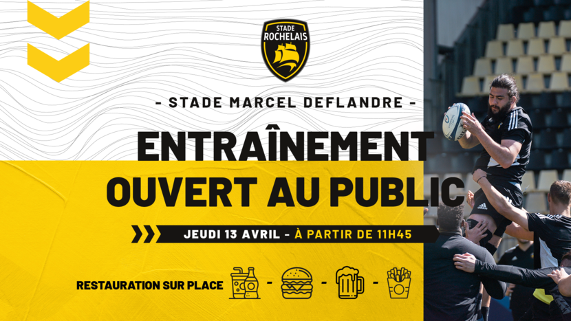 Alors que les Rochelais retrouveront le championnat de Top 14, samedi face à l'Aviron Bayonnais, une nouvelle séance d'entraînement sera ouverte au public le jeudi 13 avril ! Les joueurs s'entraîneront à partir de 12h15, sur la pelouse du Stade Marcel Deflandre.