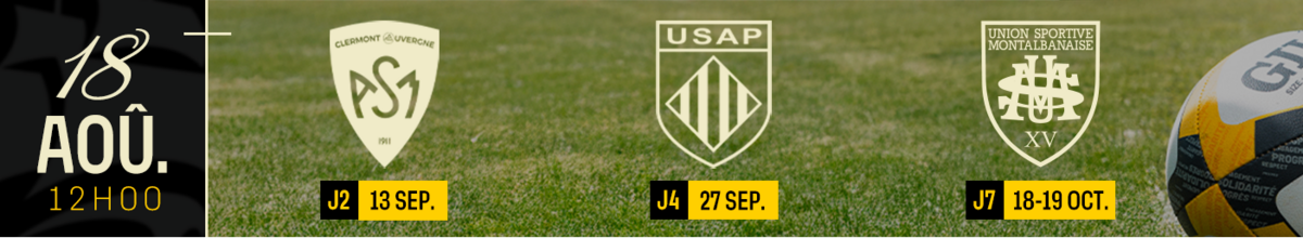 Nous vous donnons donc rendez-vous le lundi 18 août à 18h00 sur notre billetterie en ligne pour la première mise en vente des rencontres face à l'ASM Clermont Auvergne, l'USA Perpignan et l'US Montauban !