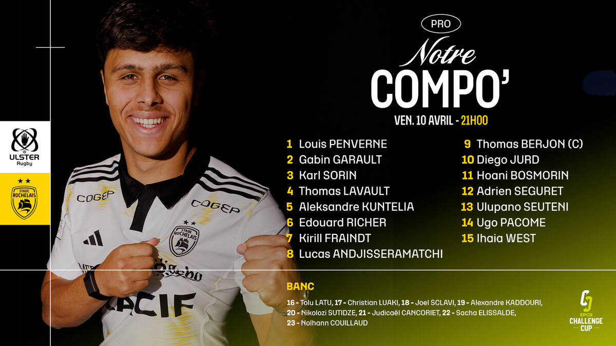 Le XV de départ : Louis PENVERNE, Gabin GARAULT, Karl SORIN, Thomas LAVAULT, Aleksandre KUNTELIA, Edouard RICHER, Kirill FRAINDT, Lucas ANDJISSERAMATCHI, Thomas BERJON (cap), Diego JURD, Hoani BOSMORIN, Adrien SÉGURET, Ulupano SEUTENI, Ugo PACOME, Ihaia WEST.