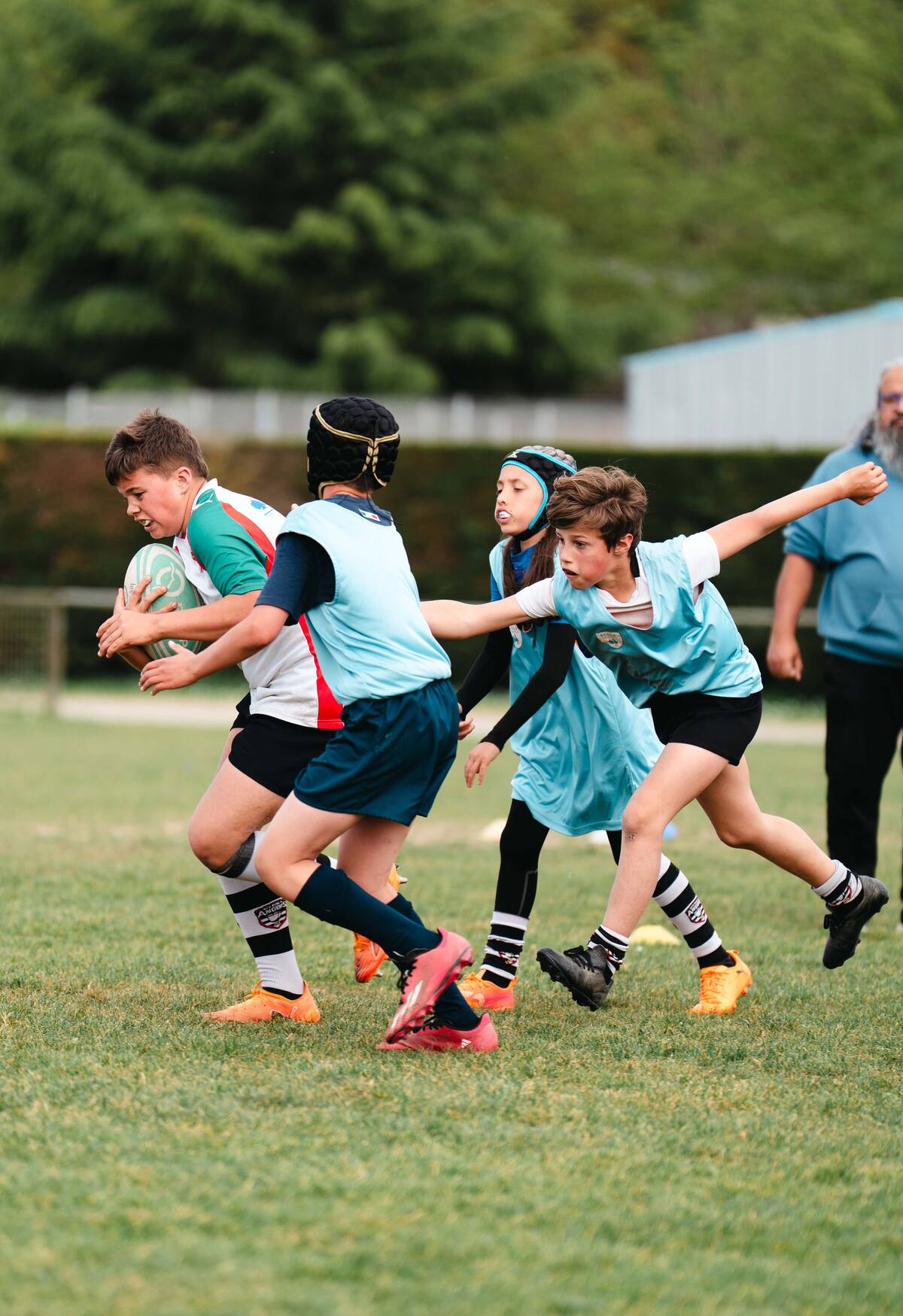 De Tours à La Roche-sur-Yon, en passant par Angers et Granville, les équipes du Stade Rochelais ont sillonné la région pour proposer des stages immersifs pendant les vacances scolaires. Chaque étape s’est déroulée sur deux journées distinctes : la première dédiée aux catégories U12, la seconde aux U14 Garçons et U15 Filles. L’objectif était clair : accompagner les jeunes joueurs et joueuses dans leur progression, tout en diffusant une culture de jeu commune.