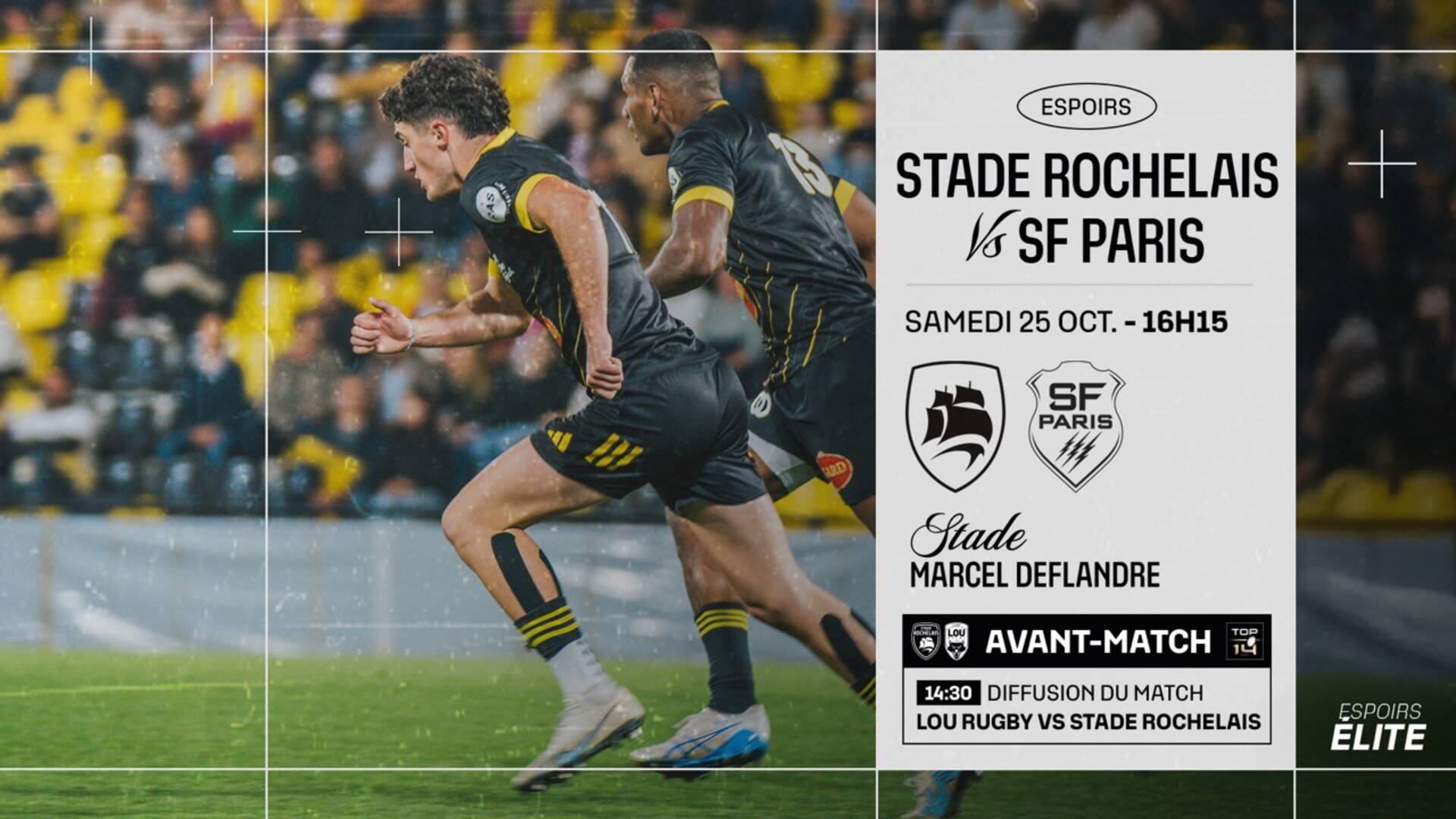 - 16h15 : Espoirs Stade Rochelais vs Espoirs Stade Français Paris